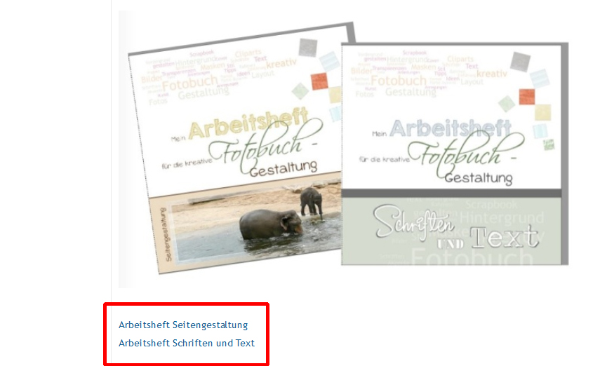 Ich habe schon diverse Fotobücher erstellt, und nun bin endlich neu in dem Forum. Habe schon sooo viel Interessantes entdeckt - zum Beispiel das Arbeitsheft "Schriften und Texte". Dann auch Musterbeispiele zur Gestaltung von Inhaltsübersichten in Fotobüchern. Und das ist mein Problem: Das finde ich nicht wieder. Kann mir jemand einen Tipp geben, wo diese Musterbeispiele "versteckt" sind? (und, weil ich neu bin: Wo finde ich eventuelle Antworten??) Danke im Voraus und viele Grüße Guschi Re: Für Interessierte: Meine AnleitungshefteHallo Guschi,
