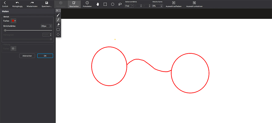 Das Herstellen von "echten" Kreisen oder Quadraten bzw. Ovale oder Rechtecke in festen Proportionen ist etwas schwieriger, da beim Malen keine Proportionen vorgegeben werden können. Nicht sehr komfortabel, aber es geht so: Bild in der Schau öffnen. Z.B. einen (echten) Kreis mit der Feststelltaste und dem Auswahlwerkzeug an gewünschter Stelle platzieren. Zum Malwerkzeug wechseln. Mit der Kreisfunktion vom Anfasser des Auswahlkreises (Ameisenlinie) einer Ecke zur diagonal gegenüberliegenden Ecke mit gedrückter Maustaste einen nahezu perfekten Kreis zeichnen. Mit Oval, Quadrat und Rechteck funktioniert das sinngemäß. Lieber Gruß, pitty