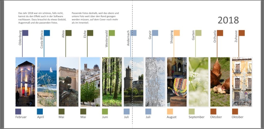 Re: 8. Dezember | Kategorie: KreativesDas ist wieder was für mich. Ich habe noch nie ein Jahrbuch gestaltet und auch noch in keinem meiner Bücher eine Zeitschiene eingebaut. Deshalb habe ich jetzt mal experimentiert. Dabei habe ich die neue "Malen"-Funktion benutzt. Die bunten Rahmen und auch die (etwas krakelige) Linie sind damit gestaltet. Es ist mein erster Versuch mit dieser Funktion.