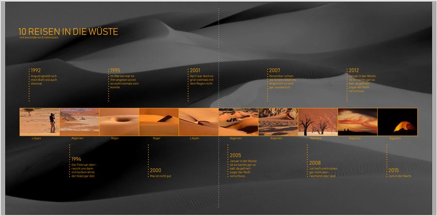 Josefia Re: 8. Dezember | Kategorie: KreativesDiese heutige Herausforderung bringt mich auf eine weitere Layoutidee. So könnte ich mir ein Inhaltsverzeichnis in einem Sammelband von unseren vielen Wüstenreisen vorstellen: