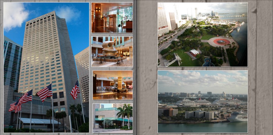 Wenn ich mir das richtig zusammenreime, so ist das Hochhaus ein Hotel, die vier kleineren Bilder zeigen die Lobby und die beiden anderen die Sicht vom Hochhaus aus.