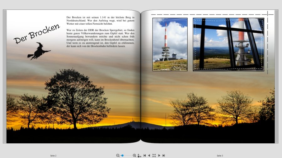 Hallo Hans-Jürgen, schön, dass hier Deine gestalteten Seiten zeigst. Mir persönlich hat die 2. Version der zuerst gezeigten Seiten besser gefallen.Diese wirken auf mich interessanter. Dies ist aber wie immer Geschmackssache. Die 3. gezeigte Seite mit dem Brocken und der Hexe finde ich witzig. Vielleicht kannst Du diese an die 2.Version angleichen. Was den Text anbetrifft, da stimme ich Kunigunde zu. Außerdem würde ich aufpassen, dass der Text nicht zu nahe an den Falz reicht. Ich versuche immer mindestens 1,5 bis 2 cm Abstand zum Falz einzuhalten. Weiterhin noch viel Spass beim Gestalten. Liebe Grüße Asiafan