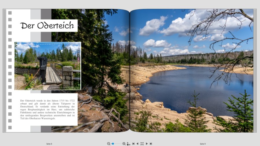 Danke, das bestätigt erneut meine Zweifel. Es wird allerdings etwas dauern, bis das Buch druckreif ist, aber wenn's soweit ist, schalte ich es frei.....auch von mir ein Willkommen im Forum. Einen Stilwechsel würde ich ggf. für Kapiteleinleitungsseiten verwenden, aber ansonsten einem Stil im Buch treu bleiben, wie es auch schon DSL-schnell erwähnt hat. Da Du auch fragst, welcher Stil schöner ist: Mir gefallen die Seiten ab dem Oderteich etwas besser als die Seiten davor. Das mag aber auch an den wunderschönen Motiven liegen, die Du da zeigst. Auch mag ich gerade ausgerichtete Schrift lieber als schrägstehende. Aber vielleicht ist das eher persönliches Gusto. Ich freue mich schon auf Dein Buch. Du zeigst es doch sicher bei den Kundenbeispielen? Dein letztes Werk über Rügen habe ich heute schon zum zweiten Mal durchgeblättert. Sehr schön! LG Hans-Jürgen