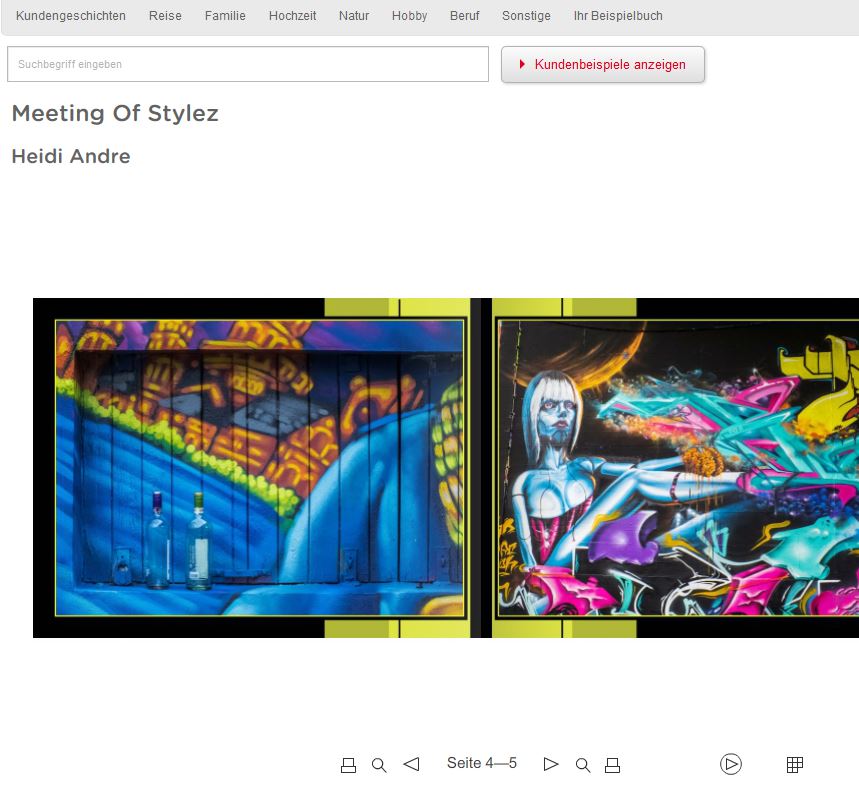 ich nehme an, du meinst die Kundenbeispiele, die man hier oben anklicken kann. Die Seite mit den Kundenbeispielen wird demnächst deaktiviert, dafür gibt es dann nur noch die von @DSL-schnell verlinkte Seite. Ich kann in den alten Kundenbeispielen auch nicht mehr blättern, vermutlich steht die Deaktivierung kurz bevor. Hier hat Sylke was zum Thema geschrieben: http://www.cewe-community.com/forum/vie ... le#p104728 LG