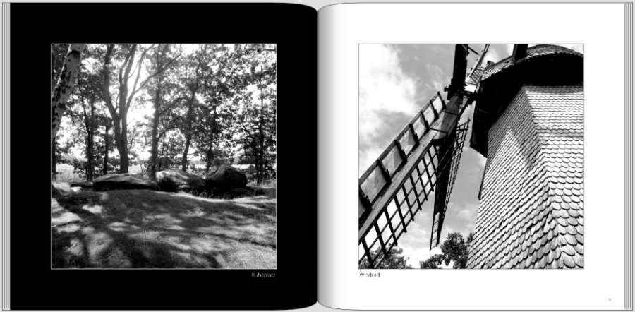 Re: Black & WhiteAuf Wunsch von Traumfänger poste ich hier gern ein paar Screenshots aus einem kleinen Schwarzweiß-Projekt. Es ist als Zusatz zu einem Urlaubs(Tage)buch entstanden und sammelt daher nur wenige ausgesuchte Motive je Reisetag. Ich wollte einfach mal schauen, wie eine solch schlichte Gestaltung über mehrere Seiten gedruckt wirkt und ob sie mich auch langfristig überzeugt.