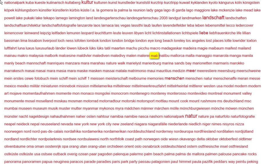 vgl. Kundenbeispiele jetzt findbar Aktuell werden zum Beispiel immer noch etliche Schlagworte gelistet, zu denen es kein Suchergebnis gibt. :shock: Vermutlich handelt es sich entweder um Schreibfehler oder die Bücher sind als Kundenbeispiel nicht mehr verfügbar. Wahllos und zufällig habe ich nur einige wenige Suchbegriffe getestet und hatte folgende Ausbeute nicht mehr aktueller Schlagworte (Tags): auffangstation austausch hadar jungend komunia kroatie lüks lüks tadil nageldesign schule wm wm 2010 Re: keine Kundenbeispiele?Bertha hat geschrieben: Wenn ich "Mali" eingebe kommt: ...
