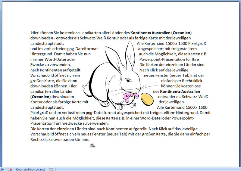 Re: Variante zu den KundenbeispielenHallo Grasmuecke, einen ähnlichen Effekt, aber bei Weiten nicht so gut wie das gezeigte Beispiel, kannst du erzielen, indem du mit Zeilenumbrüchen arbeitest. Also auf der linken Seite linksbündig den Text schreiben und wen du in die Nähe des Objekts kommst ein return eingeben. Auf der rechten Seite gegengleich, also rechtsbündig schreiben.