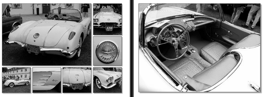 Spica Re: 7. Dezember | Kategorie: KreativesEine Doppelseite aus meinen Fotobuch über eine Oldtimer-Ausstellung.