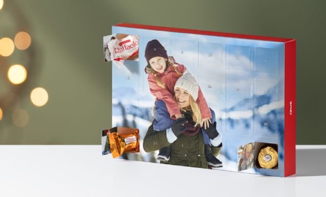 Hinter jedem Türchen können Sie jetzt ein persönliches Foto einsetzen. Doppelte Freude für Groß und Klein! Das Ganze kommt mit einem 100% biogisch abbaubaren Innenteil.