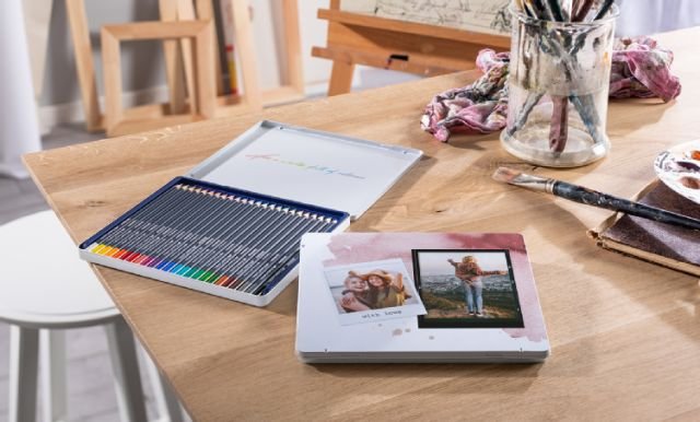 Das Faber Castell Foto-Metalletui wird mit 24 Goldfaber Aqua Aquarellstifte geliefert. Das Metalleuti können Sie mit Ihrem ganz persönlichen Foto verzieren.
