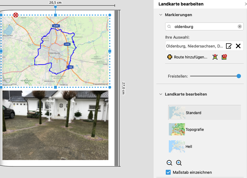 Die Landkartenfunktion wurde optimiert. Fügen Sie zu Ihren Landkarten einen Maßstab hinzu oder legen Sie Markierungen Ihrer Lieblingsorte fest. Diese Funktion haben wir für Sie ebenfalls erweitert.