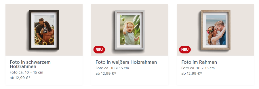 Fotos können nun auch mit weißem und braunem Holzrahmen bestellte werden.