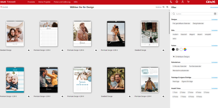 Neue Kalenderdesignauswahl ohne Vorinstallation