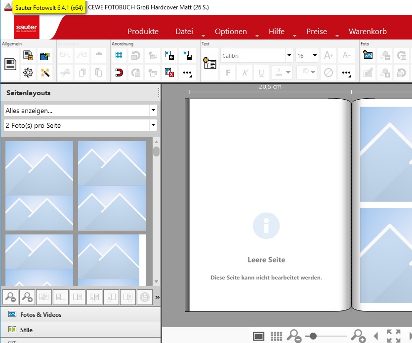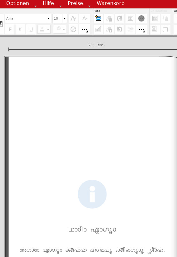 ich erstelle gerade ein Fotobuch. Da sind in der Bemaßung und in den leeren Seiten am Anfang und Ende seltsame Zeichen zu sehen (s. Anhang). Kann ich das ignorieren? Verwende hier Version 6.4.1 (Sauter-Branding) unter Linux. Sonst ist hier alles deutsch eingestellt und die Menüs machen das auch korrekt. HP Re: Seltsame Zeichen im FotobuchdesignerHallo hp23,