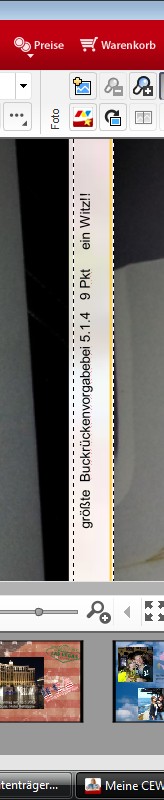 Von Sperrung kann keine Rede sein. CEWE empfiehlt als Workaround (wegen des in 5.1.4 verschobenen Buchrückentextes) sogar die Anlage eines eigenen Textfeldes.--> http://www.cewe-community.com/forum/vie ... 512#p74512 Re: Buchrückenbeschriftung - der DauerbrennerDanke das funktioniert. Ich hatte das Textfeld zu klein gemacht und dann konnte man das nicht rüberziehen.
