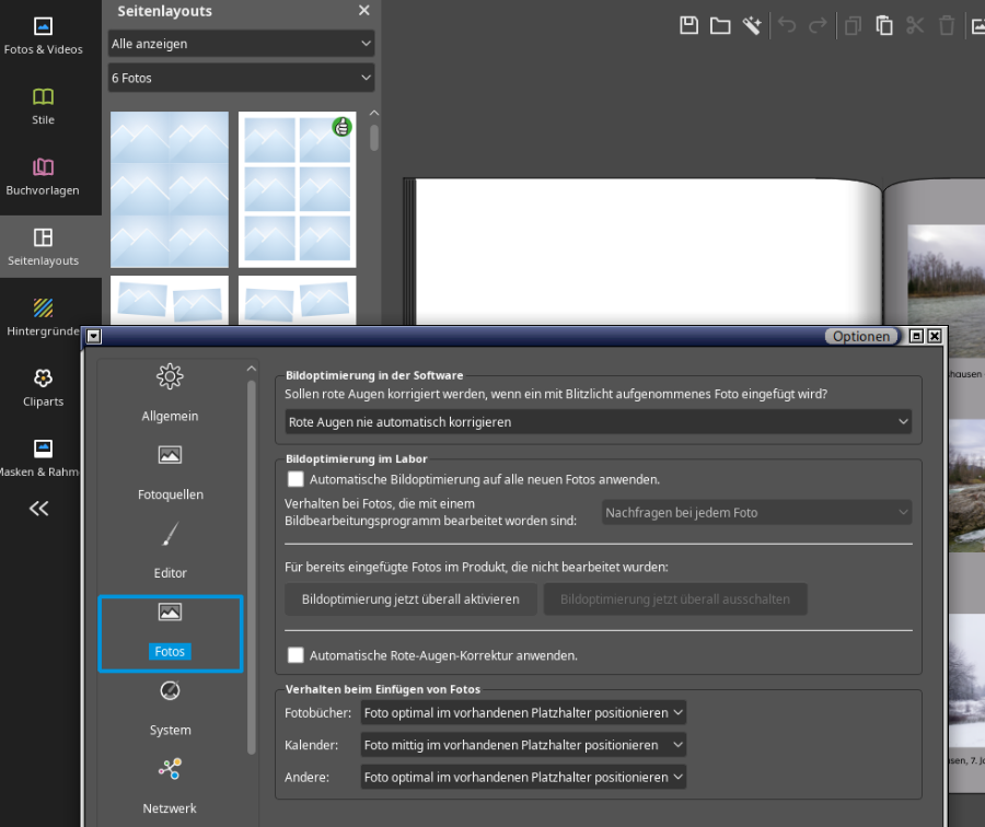 Wenn du also alle Bildinhalte deiner Fotos haben möchtest, muss "Größe des Platzhalters an das Foto anpassen" eingestellt sein, dann sieht aber das gewählte Layout nicht mehr wie gewünscht aus. Ansonsten passt das Programm deine Fotos optimal in den Platzhalter ein und schneidet überstehende Bildteile ab.