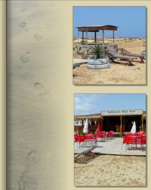 Fußspuren am Strand fotografiert. Im Buch beiger Hintergrund und das Fußspurenbild mit Passepartout "Verläufe" nach rechts auslaufen lassen. Vielleicht gefällt es euch ja :) LG LG