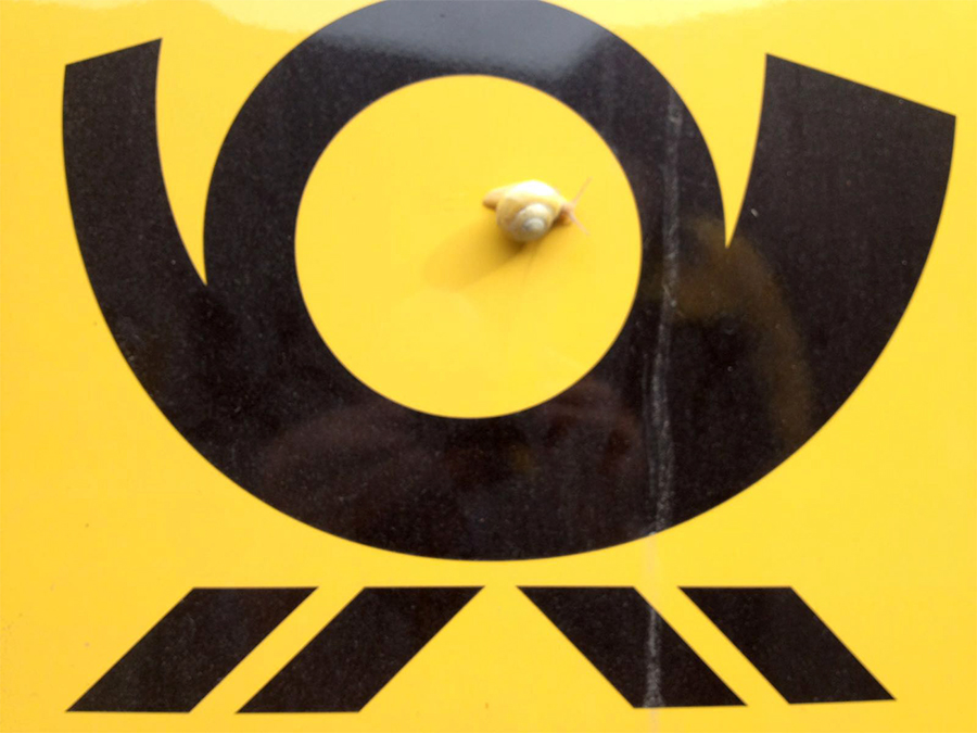 Re: Challenge 05/2016 • Teil des GanzenIch hab zwar schon ein Foto für diese Challenge eingestellt, die Schneckenpost wollt ich euch aber nicht vorhalten. Ist zwar nur mit dem Handy fotografiert, daher nicht so gut in der Qualität, fand's aber sehr witzig. Unser Postbote meinte, die ist ihm wohl während der Fahrt auf's Auto gesprungen