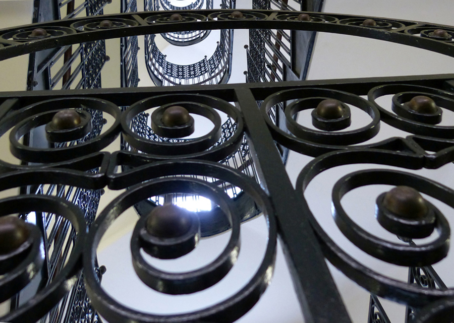 Re: Challenge 10/2016 • Schau nach oben!Zum Ende der Oktoberchallenge noch schnell ein paar 'Blicke nach oben'. Die Fotos entstanden am vergangenen Wochenende bei einer Büroexkursion nach Wien. Sie zeigen Teile des Wiener Postsparkassenhauses und das Treppenhaus vom Motel One am Opernplatz.