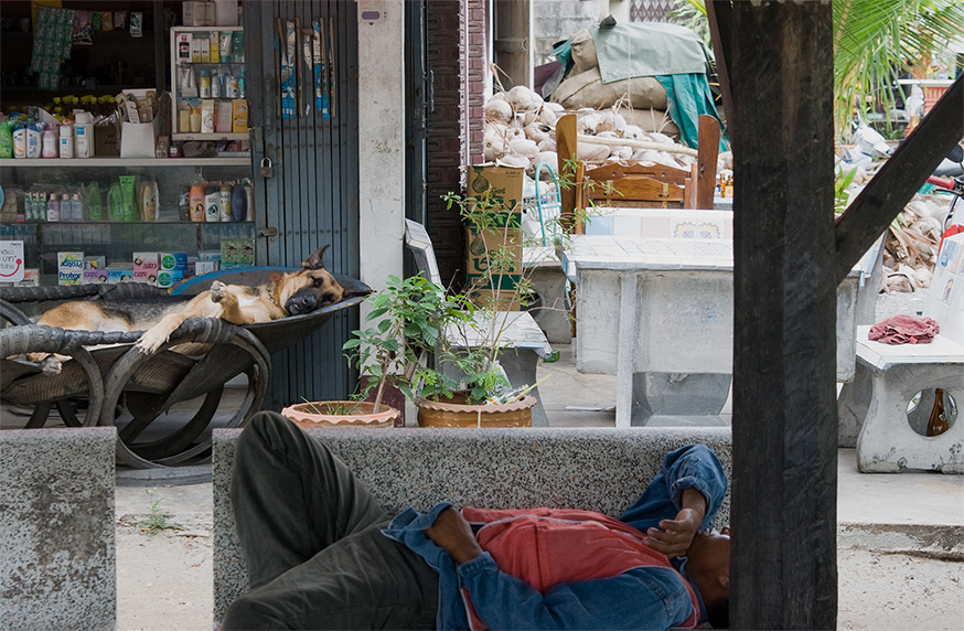 Re: Challenge 04/2015 • Gleich und gleich gesellt sich gerne..früh am Tag,Straßenhunde auf einer Strandpromende in Hua Hin (Thailand)