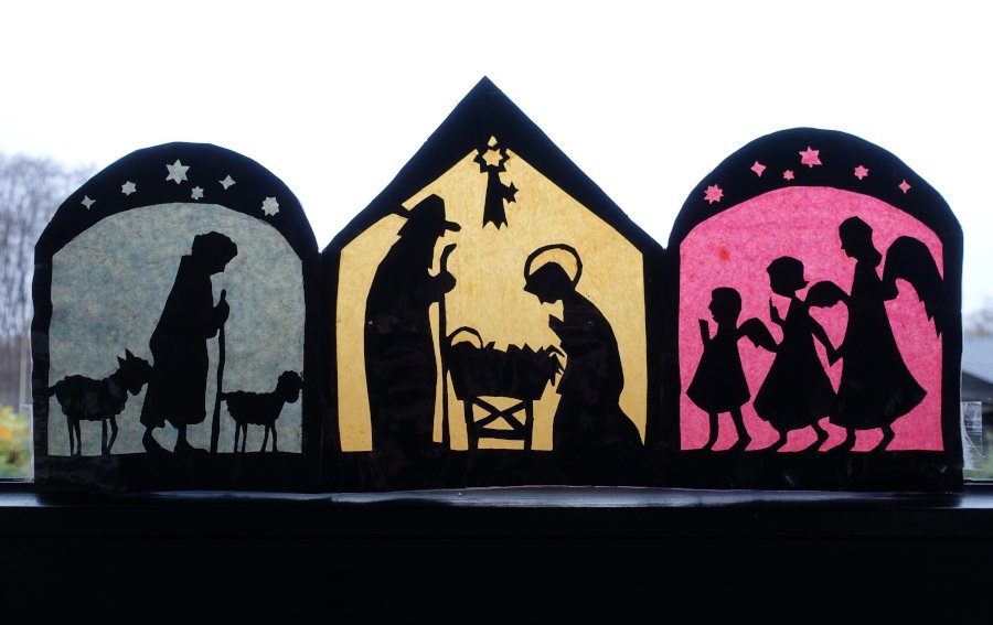 Re: Challenge 11/2020 • Für immer mein!Beim adventlichen Schmücken über den Weg gelaufen. Als Kind habe ich dieses Fensterbild gebastelt und meiner Mutter geschenkt. Lange war es in der Versenkung verschwunden. Im Nachlass meiner Mutter habe ich es wiedergefunden und nun wird es in jeder Adventszeit an mein Küchenfenster gepinnt. Die Farben waren nach und nach sehr verblichen, so dass ich zwischendurch schon mal etwas restaurieren musste.