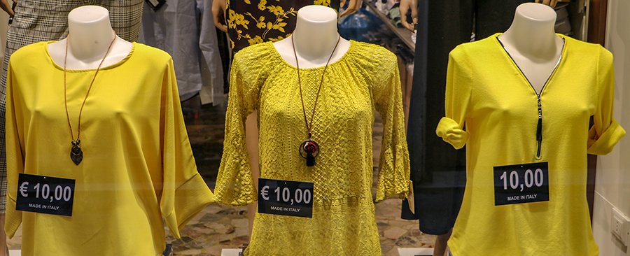 Re: Challenge 07/2021 • Alles gelb!Mir persönlich steht gelb gar nicht. Im Schaufenster sind die leuchtenden Farben aber ein Hingucker. Hier stellt wohl ein Discounter aus...