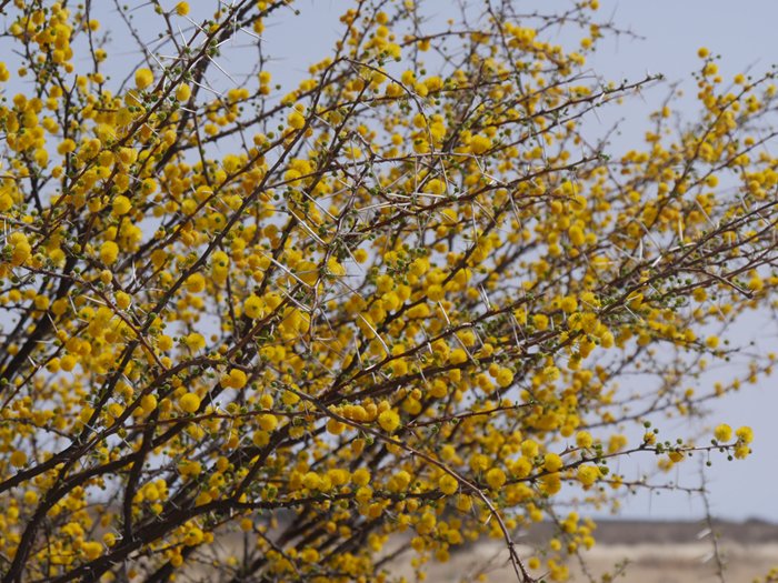 Silber-Distel Re: Challenge 07/2021 • Alles gelb!Kameldorn, Lieblingsfutter der Giraffen, die mit ihren langen Zungen zwischen den Dornen das Grün erreichen können (in der Kalahari/Botswana).