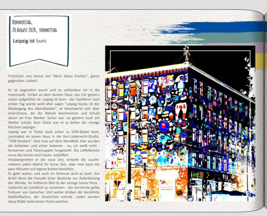 Das bunte Haus hatte ich bei Tag fotografiert. Ich habe die Regler bei den Kontrasten hochgezogen und dann noch invertiert. Plötzlich habe ich ein scheinbare Nachtaufnahme. Das werde ich zwar so nicht lassen, aber es ist wirklich faszinierend, was man da inzwischen alles machen kann. Von den alltäglichen einstellungen wie Optimieren, Horizont begradigen usw, überhaupt nicht zu reden. Genial!!!!