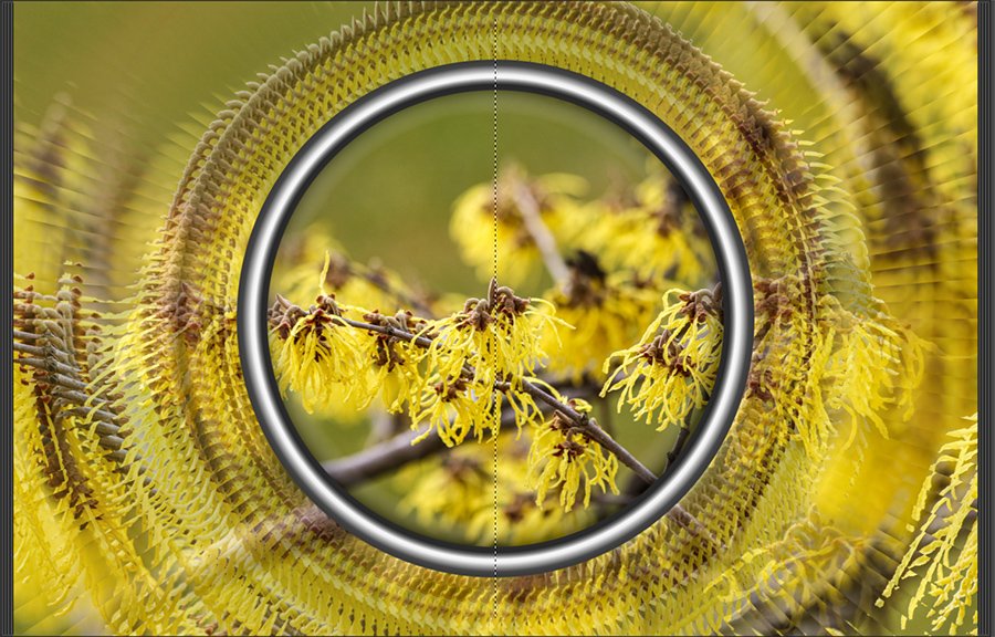 Re: 09. Dezember | Kategorie: SoftwareHintergrund-weichgezeichnet und mit Vignette, dann schwarz-weiß, dann Originalfoto, Blütenblatt mit Fotoschau ausgeschnitten und darübergelegt.