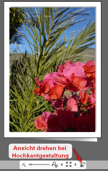 grundsätzlich kann man davon ausgehen, dass im Editor nichts "überkopf" dargestellt wird. Man muss die Karte zur Rückansicht gedanklich um eine Vertikalachse drehen (und nicht um eine Horizontalachse). Für die Hochkant-Gestaltung ist es am einfachsten, die Gestaltungsansicht um 90° zu drehen.
