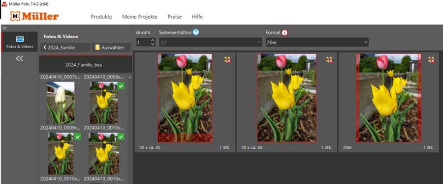 kann es sein, dass seit dem letzten update der Software, bei den 20,30,40 und 50 cm Fotos die Funktion Original Seitenverhältnis nicht mehr anwählbar ist? Oder mache ich was falsch? Ich bin sicher, dass ich bei der vorherigen Version noch ein 40cm x 53cm Format bestellt und korrekt "abgeschnitten" erhalten habe (vor ganz wenigen Wochen) Jetzt wird das Foto (ist hochformat) seitlich angeschnitten, was nicht sein darf... Danke für Hilfe jeglicher Art :-) (Natürlich kann ich es auf das 3:2 erweitern und dann selber abschneiden, macht aber unnötig Arbeit und unnötig Materialverbrauch im Labor...)