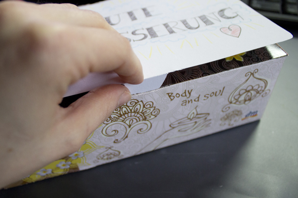 Schritt 6: Verpacken Sie die fertige Box nun mit einer Packung Tee oder Ihrem liebsten Erkältungsbad und schon ist Ihr Carepaket fertig.