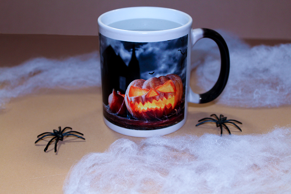 Unsere Zaubertasse eignet sich perfekt als gruselige Überraschung oder als Accessoire für eine Halloweenparty.