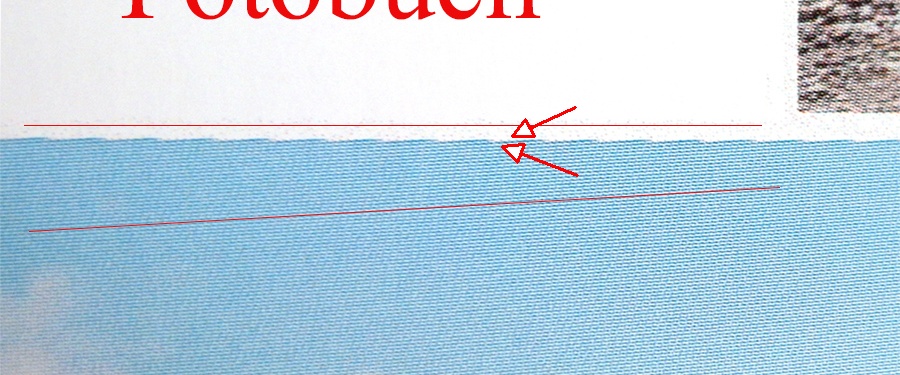 ich habe Fotobücher, da muss ich auch sehr genau hinschauen, und welche, da müsste man schon in den Krümeln suchen, um zu sagen, da sind welche. In manchen Fotobüchern springt es aber (mir) sofort ins Auge. Im Ernst, ich habe noch kein Fotobuch deswegen reklamiert, weil ich glaube, dass man das nur sieht, wenn man sein Augenmerk auch auf die Gestaltung und Fertigung legt, aber das tue ich eben. Meine Beobachtung: Die "Sagezähne", so nenne ich sie, sind nicht nur an Linien und Farbrändern, sondern auch an einfarbigen Flächen. Sie kommen nicht in jedem Fotobuch vor und sie sind unterschiedlich stark. Ich habe auch Fotobücher mit 0,1mm Farbrand, die sind in Ordnung. Dann sind sie bei einem Fotobuch-Format senkrecht, bei einem anderen waagerecht, so dass ich vermutet habe, dass es etwas mit der Ausrichtung zu tun hat, in der das Papier durch die Drucker läuft. Fazit: Da sie unterschiedlich ausgeprägt sind und manchmal gar nicht vorhanden, vermute ich, dass es was mit dem jeweiligen Drucker zu tun hat und deshalb nicht grundsätzlich unabänderlich ist. Diese Beobachtungen habe ich schon an CEWE kommuniziert, ich habe aber keine Rückmeldung dazu bekommen. liebe Grüße
