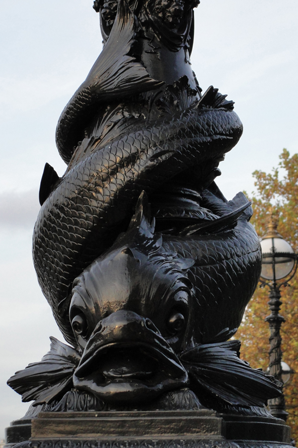 Ente am Albert Embankment Laterne am Albert Embankment Teil des Hindu Tempels Fassade von Twinings Viele Grüße Nessie
