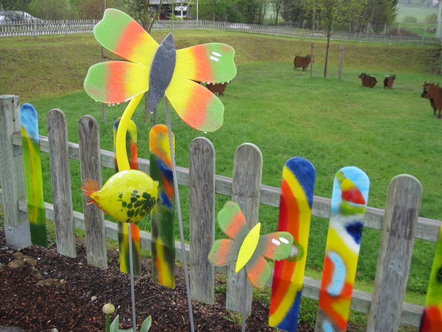 Re: Challenge 09/2016 • Jetzt wird's bunt!Dieses Jahr waren wir an der Glasstraße im Bayerischen Wald. Dort stehen diese farbenfrohen Glas-Objekte, die auch im Winter nichts an ihrer Leuchtkraft einbüßen.
