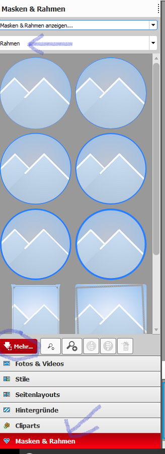 willkommen im Forum. wenn du das Fotobuch öffnest findest du auf der linken Seite ( siehe Anhang) verschiedene Optionen und unter Rahmen und Masken sind die Formen zu finden. Da befinden sich Kreise mit Rahmen, die man auch umfärben kann, sollten due keine finden dann klicke mehr an und lade sie dir herunter. Ich hoffe ich habe es verständlich erklärt. Viel Spaß bei deiner Gestaltung. Gruß