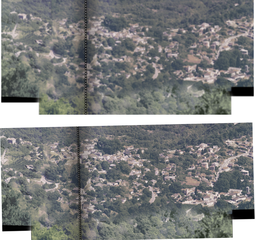 Re: Darstellung auf der DesignseiteIch dachte, wir hätten das Thema schon einmal gehabt, aber ich finde es nirgends. Ich habe ein Bild, das aus mehreren jpgs zusammengesetzt ist, im Editor über beide Seiten gezogen (also gar nicht als Hintergrund definiert).Dann habe ich einen Screenshot vom Fotoeditor und einen Screenshot von der Vorschau gemacht. Die Abbildung zeigt in der oberen Hälfte einen kleinen Ausschnitt vom Fotoeditor und in der unteren Hälfte den selben Ausschnitt in der Vorschau. Ich hoffe, man kann auf diesen Ausschnitten noch den Unterschied in der Schärfe sehen. In natura jedenfalls ist das Bild in der Vorschau auffällig schärfer als in der Editor-Ansicht.