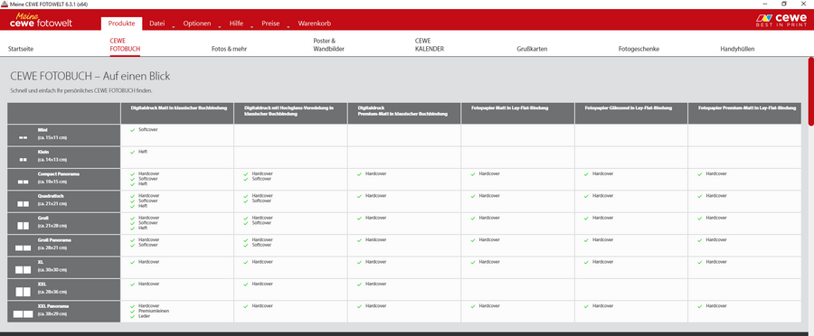 Wir laden Sie herzlich ein, die neue CEWE Community mit integriertem Forum zu entdecken und künftig zu nutzen. Das bisherige Forum, in dem Sie sich gerade befinden, steht nur noch bis Ende 2025 für neue Beiträge zur Verfügung und wird ab dem kommenden Jahr 2026 nur noch lesend zugänglich sein. Informieren und registrieren Sie sich jetzt in der neuen CEWE Community – wir freuen uns auf Sie! Digitaldruck Premium Matt Lay-FlatBetriebssystem: Windows