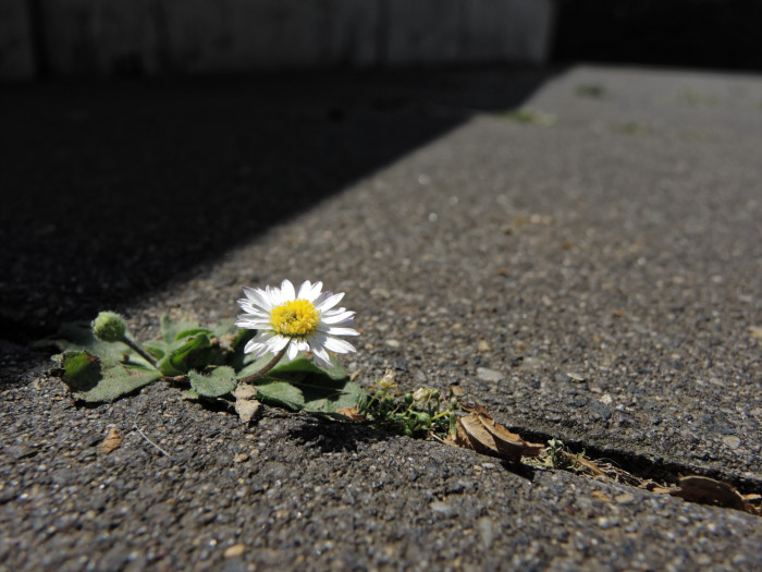 Re: Challenge 06/2019 • Rosen im AsphaltGeht man mit offenen Augen durch die Stadt, stolpert man vielleicht über ein klitzekleines Gänseblümchen zwischen den Betonplatten, das einsam und allein immerhin in Gesellschaft von ein bisschen Gras überlebt.