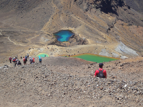 Fokussy Re: Challenge 07/2019 • Bis ans Ende der WeltAm steilen Abstieg vom Red Crater zu den Emerald Lakes mit Blick auf den Blue Lake, einem heiligen See der Maori.