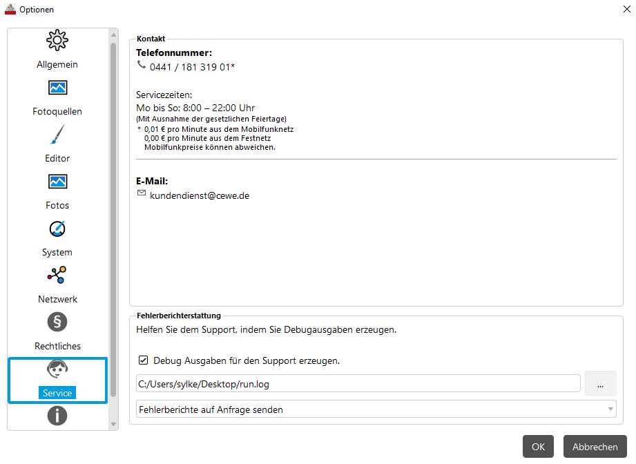Allerdings kann ich mich nicht erinnern, dass hier im Forum außerhalb von Okulars Beitrag über reproduzierbare Abstürze aus der Fotoschau berichtet wurde. Es geht bei dir ja, anders als bei Fiskbo oben, um die CEWE-Fotoschau, evtl. im Zusammenspiel mit der neuen Version der Fotobuch-Anwendung, möglicherweise aber auch im Zusammenhang mit Komponenten deines PCs. Kannst du bitte ein paar weitere Angaben machen: Mit welchem Betriebssystem arbeitest du, wieviel Arbeitsspeicher und wieviel freien Speicherplatz hast du auf der Festplatte, mit welcher CEWE-Fotobuch-Version hast du zuletzt gearbeitet. Wenn du zwischenzeitlich weiterarbeitest (ohne die Fotoschau zu nutzen), könntest du schon eine .log-Datei erstellen lassen. Dafür aktivierst du in den Optionen bei System, Fehlerberichterstattung die Option "Debug-Ausgaben für den Support erzeugen". Beim nächsten Programmstart wird dann die Datei angelegt. Vielleicht reichen diese Angaben dann schon, damit dir Sylke nach dem Wochenende weiterhelfen kann. liebe Grüße