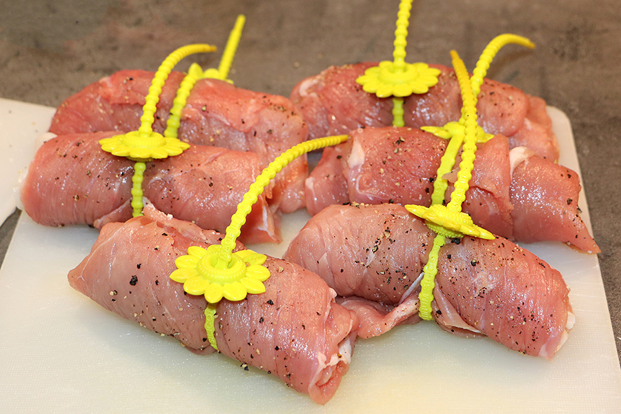 Zur Abwechslung nach den vielen Naschereien mal etwas Deftiges. Rinderrouladen und lauter gleiche Rouladenbinder aus Silikon.