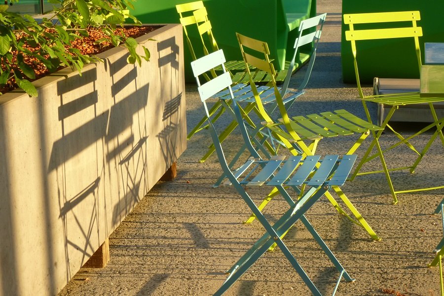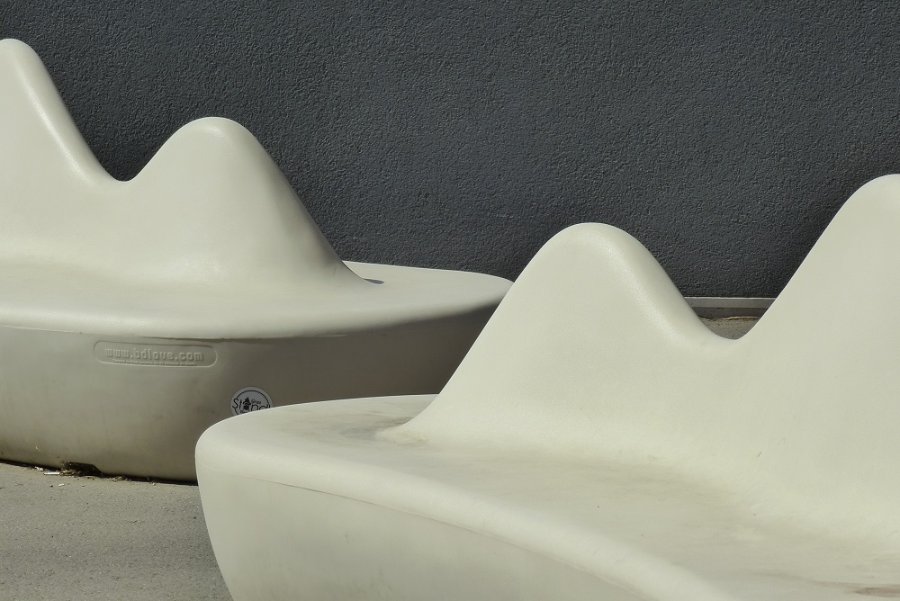 Silber-Distel Re: Challenge 06/2020 • AuszeitBunte Sitzmöbel auf dem Krankenhausgelände - in Rot und Weiß.