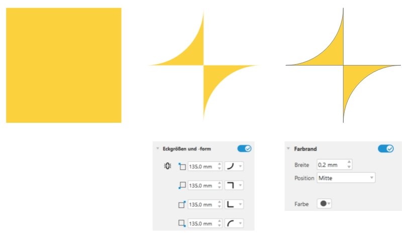 2) Dann setzt du unter Dekorieren > Eckgrößen und -form die Einstellungen wie im Screenshot (das Schloß-Symbol muss entsperrt sein)