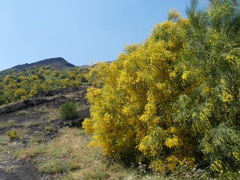Ich wollte grad ein neues Bild einfügen mit Schwärzung, geht aber nicht mehr. Vielleicht macht es mir eine der Cewe-Damen weg. Re: Challenge 07/2021 • Alles gelb!Das muss ich zum Thema Gelb jetzt doch noch beitragen: Inzwischen sind wir bis weit in den Süden Italiens gekommen, nach Sizilien am Fuß des Ätna. Da haben wir heute eine Tour bis unter den Gipfel auf knapp 3000m gemacht (nicht zu Fuß, mit Bus und Seilbahn!) und dabei sind wir durch eine Gegend mit üppig blühendem und herrlich duftendem GELBEN Ätna-Ginster gekommen. Diese Pflanze kommt hier endemisch vor, die Blüten sind dem unseres einheimischen Besenginsters sehr ähnlich, aber die Büsche werden mehrere Meter groß, zum Teil sind es richtige Bäume. Auf dem Foto ist im Hintergrund ein Seitenkrater des Ätna zu sehen.