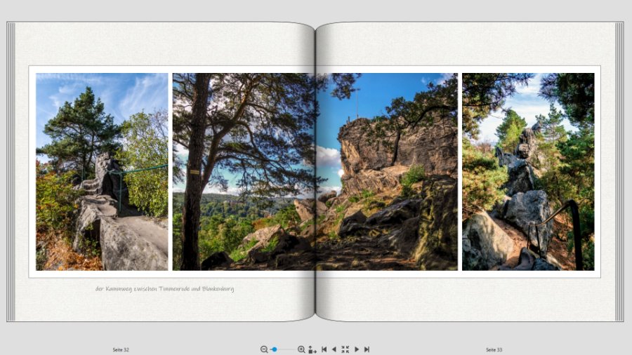 Danke, das bestätigt erneut meine Zweifel. Es wird allerdings etwas dauern, bis das Buch druckreif ist, aber wenn's soweit ist, schalte ich es frei.....auch von mir ein Willkommen im Forum. Einen Stilwechsel würde ich ggf. für Kapiteleinleitungsseiten verwenden, aber ansonsten einem Stil im Buch treu bleiben, wie es auch schon DSL-schnell erwähnt hat. Da Du auch fragst, welcher Stil schöner ist: Mir gefallen die Seiten ab dem Oderteich etwas besser als die Seiten davor. Das mag aber auch an den wunderschönen Motiven liegen, die Du da zeigst. Auch mag ich gerade ausgerichtete Schrift lieber als schrägstehende. Aber vielleicht ist das eher persönliches Gusto. Ich freue mich schon auf Dein Buch. Du zeigst es doch sicher bei den Kundenbeispielen? Dein letztes Werk über Rügen habe ich heute schon zum zweiten Mal durchgeblättert. Sehr schön! LG Hans-Jürgen
