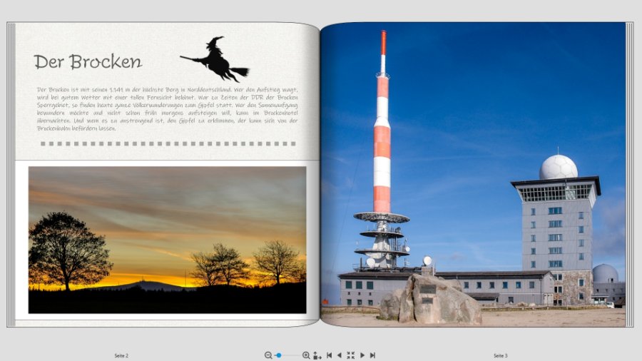 Hallo Hans-Jürgen, schön, dass hier Deine gestalteten Seiten zeigst. Mir persönlich hat die 2. Version der zuerst gezeigten Seiten besser gefallen.Diese wirken auf mich interessanter. Dies ist aber wie immer Geschmackssache. Die 3. gezeigte Seite mit dem Brocken und der Hexe finde ich witzig. Vielleicht kannst Du diese an die 2.Version angleichen. Was den Text anbetrifft, da stimme ich Kunigunde zu. Außerdem würde ich aufpassen, dass der Text nicht zu nahe an den Falz reicht. Ich versuche immer mindestens 1,5 bis 2 cm Abstand zum Falz einzuhalten. Weiterhin noch viel Spass beim Gestalten. Liebe Grüße Asiafan