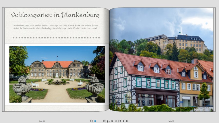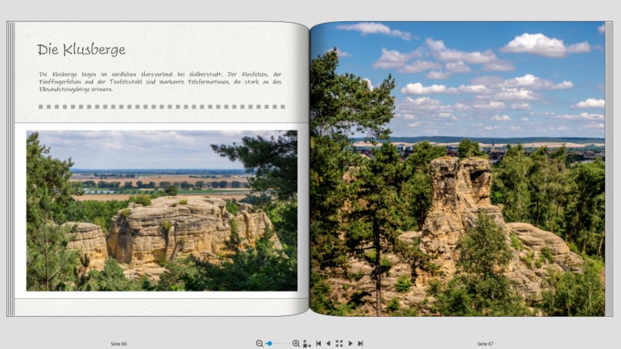 ich habe einige der Anregungen versucht umzusetzen, dies ist der aktuelle Stand des Buches: https://www.cewe-myphotos.com/webapp/#/ ... a0b4171dc0 Auf der Seite von den Schlossgärten in Blankenburg hat es leider einen Übertragungsfehler gegeben...