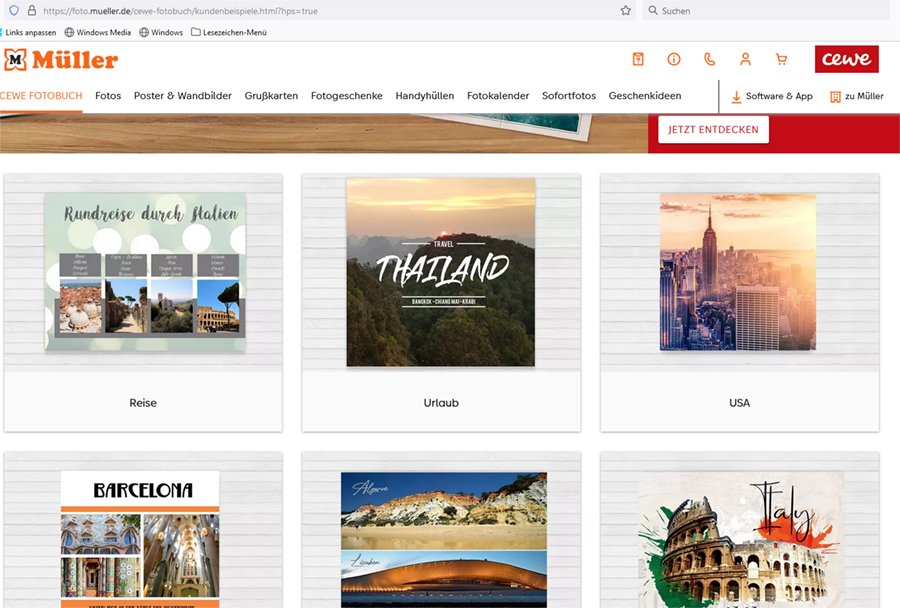 Die Seite hinter diesem Link sieht aber ganz anders aus. die Kundenbespiele sind jetzt an eine andere Stelle eingebunden worden. Wenn man auf der Startseite der Gestaltungssoftware ist, kann man ganz ans Ende scrollen. Dort ist jetzt die Verlinkung zu den Kundenbeispielen zu finden. Liebe Grüße [Sebastian] Erst wenn man weiter nach unten scrollt, kommt man auf einen Button "Entdecken Sie die Community". Wenn man hier klickt, kommt man auf die Hauptseite (?). Lieber Gruß Traumfänger Re: FotobuchsucheIch glaube, es gibt 2 Seiten mit Kundenbeispielen.